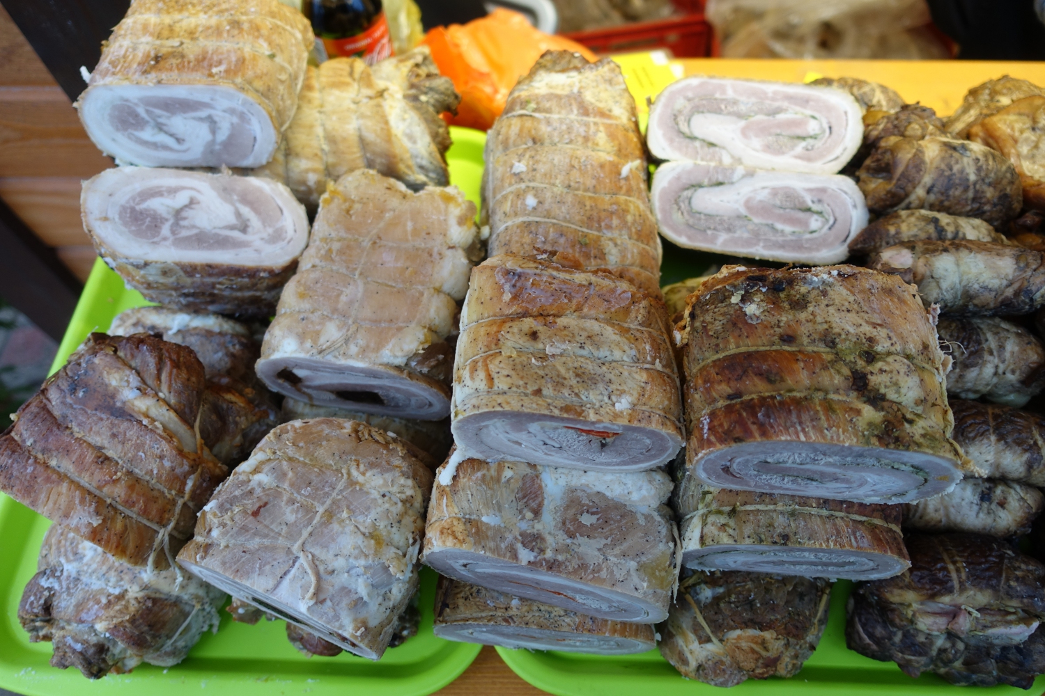 Piedāvājumā dažādi cūkgaļas (karbonāde, šķiņķis, cauraudzis, speķītis, desas) un vistas gaļas (rullīši, girosi, šķiņķīši, vistas) kūpinājumi, dažāda veida cūkgaļas ruletes, cepeši, galerti, vistas gaļas ruletes, aknu pastētes.